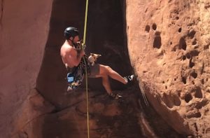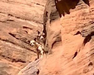 With no clear trail leading to the stranded animals and no sign of an owner nearby, Brody quickly grabbed his climbing gear and began scaling the cliff. After a tense climb, he discovered the pups huddled together in a shaded nook, cornered with nowhere to go. Carefully, he fashioned makeshift harnesses using his equipment, then began the delicate descent. With one pup perched securely on each leg, Brody rappelled down the cliff, while the dogs clung to him and trusted their new hero completely.